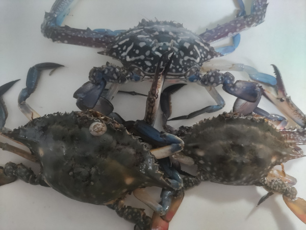 常夜灯まわりでウグイを餌にして泳がせ釣り。タイワンガザミが1匹釣れました。ガザミ2匹は泳いできたのを掬いました。