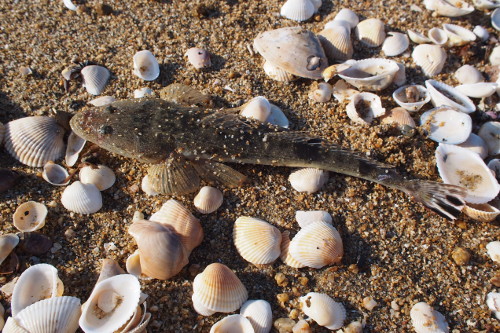 35cmほどと小さいですが、漁港南側のサーフでマゴチが釣れました。最初の着底後に巻き始めると掛かっていました。ハウル・ビーチウォーカー21g+4インチハウルシャッド(ピンク)です。漁港のすぐそばは海藻などのゴミが酷かったですが、少し離れると快適に釣りができました。ちなみに白灯波止ではサッパが釣れていました。